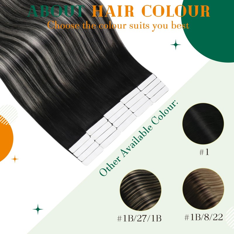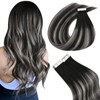 Easyouth 16Inch Tape in Human Hair Extensions Invisible Tape in Extensions Ombre Black Fading to Silver Grey Mixed Black Hair Extensions Tape ins Double Sided Glue in Hair Extensions 40g 20pcs