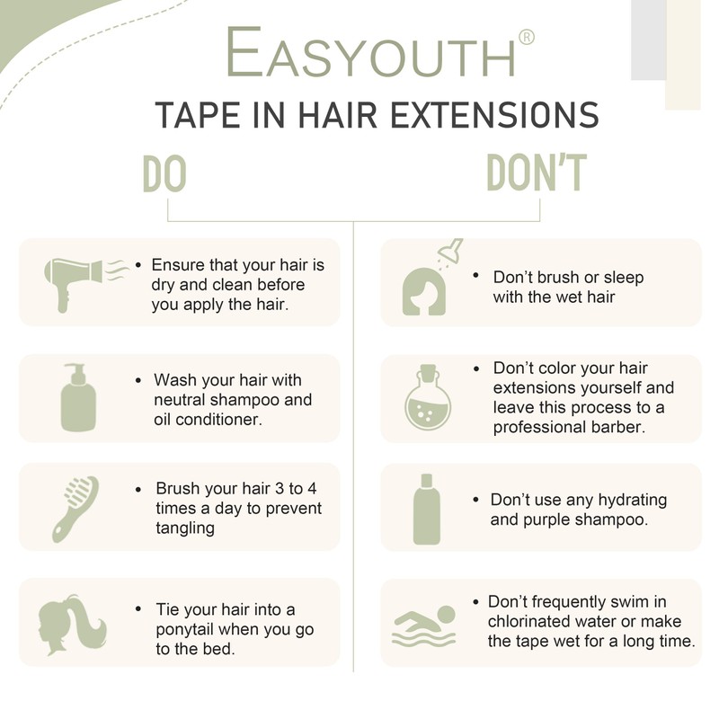 Point Two:Easyouth Tape Extensions are all 100% real human hair! So you can just curl or dye our hair extensions like your own hair! If the color doesn’t match your hair then just dye them into the color you have! (Only light color dye into dark color) However we do not recommend you bleach our hair extensions because it will damage the hair a lot.