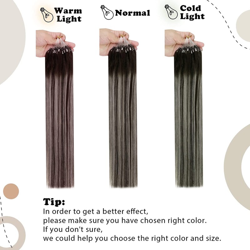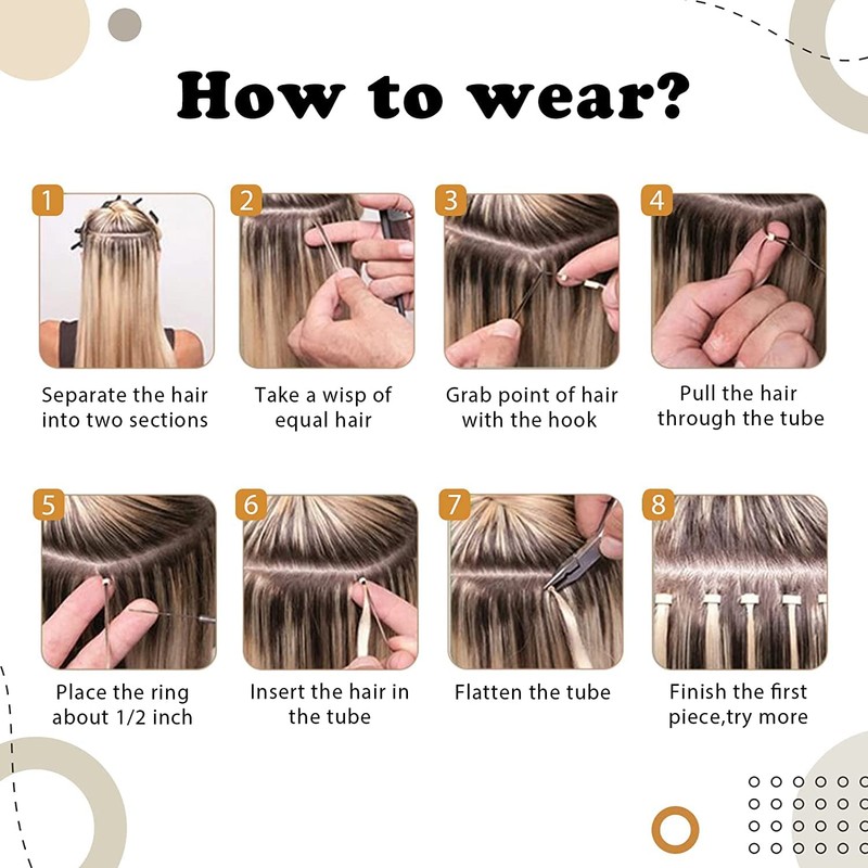 Micro ring hair extensions are made of real human hair, feel very smooth and look very natural. You can style as you like without worrying about hair loss, knots, frizz and split ends.