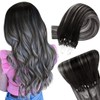 Easyouth Balayage Micro Ring Extensions Real Hair Micro Ring Extensions Off Black Mix Silver and Off Black Micro Loop Hair Extensions Balayage Black Real Hair 18 Inches 50 g