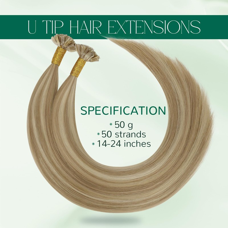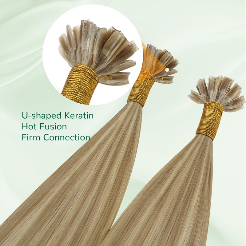 Easyouth Blonde Extensions Real Hair Bondings Remy Real Hair Bondings Extensions Ash Blonde Highlight Medium Blonde U Tip Extensions Real Hair Remy Human Hair Long Hair 45 cm 50 g #P16/22 50s