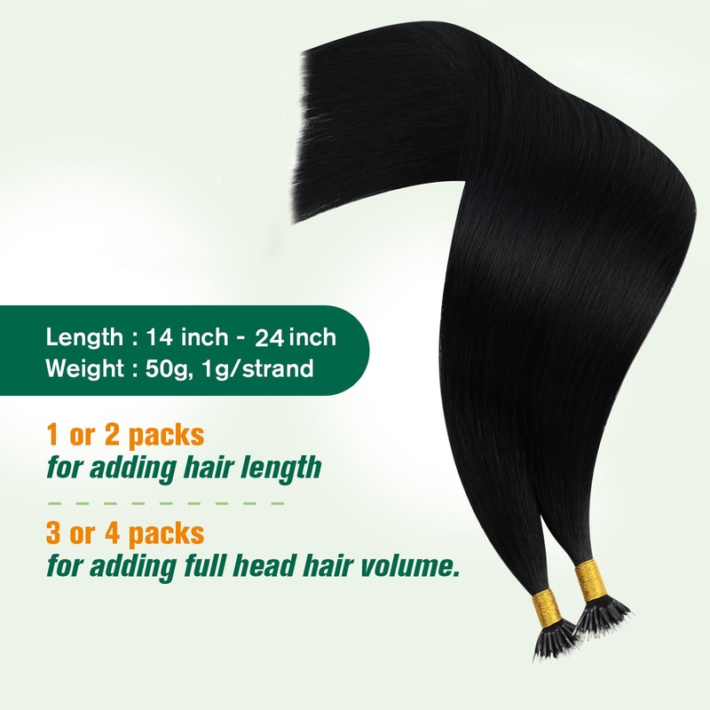 - Specifications: Easyouth nano hair extensions each pack includes 50 strands, 50g total weight. Lengths range from 14–24 inches, can adding both length and natural-looking volume