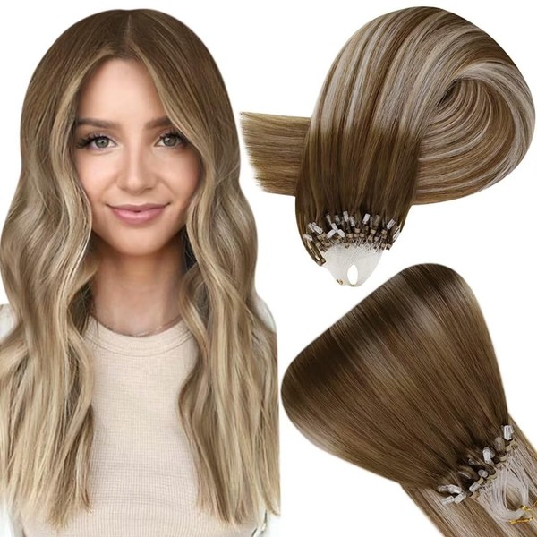 Easyouth Real Hair Extensions Micro Ring Medium Brown Mix Platinum Blonde and Medium Brown Micro Ring Extensions Real Hair Ombre Micro Ring Hair Extensions Remy Human Hair 22 Inches 50 g #6/60/6