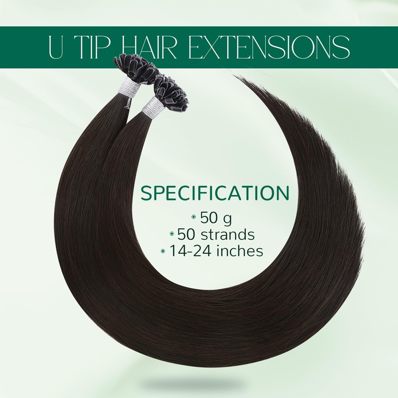 Easyouth U Tip Hair Extensions Brown Keratin Tip Hair Extensions Real Human Hair Darkest Brown Keratin Hair Extension Human Hair with Natural Texture 18Inch 50G 1G/S