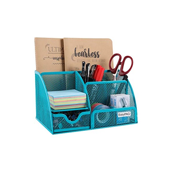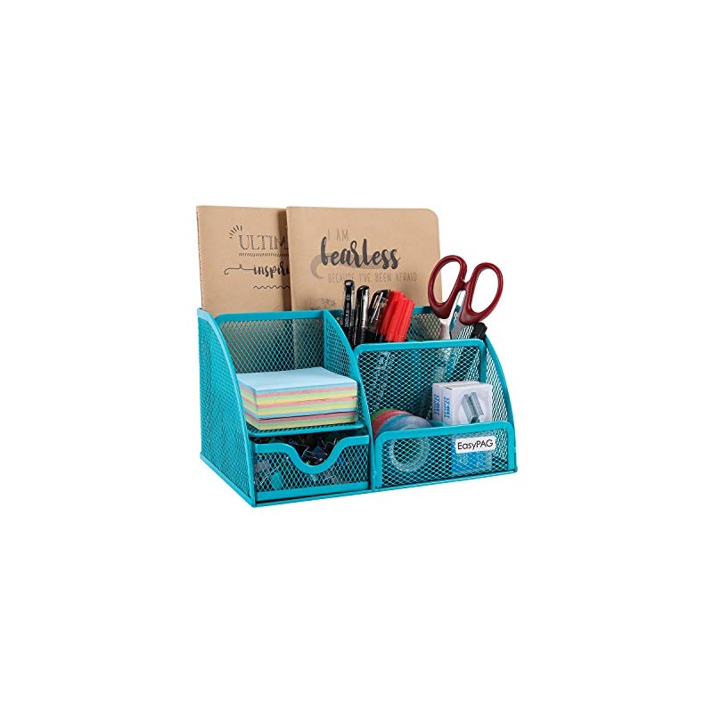 EasyPAG Desk Organizer 6 Component Mesh Office Accessories Cady with Drawer, Blue