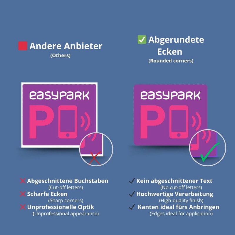 - 🚗 COMPATIBLE WITH PARKING APPS: Self-adhesive parking vignette sticker for EasyPark - for visible, app-based parking without parking disc.