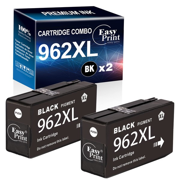 EASYPRINT (New Upgraded) Compatible (2xBlack) 962xl Ink Cartridges for HP 962xl (High Yield) Used for OfficeJet Pro 9010/9012/9013/9014/9015/9016/9018/9019/9020/9022/9023/9025/9026/9027/9028/9029