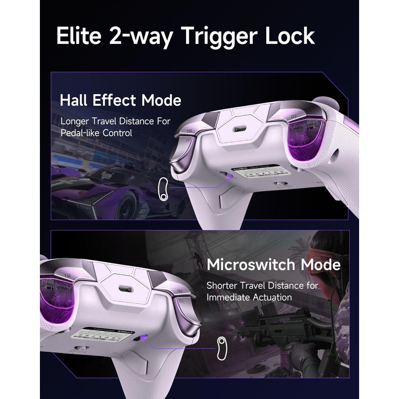 - 【Elite Dual-Mode Triggers】Seamlessly switch between Hall Effect linear triggers (ideal for racing/shooting) and micro-switch tactile triggers (optimized for fighting/action), delivering faster input recognition for diverse gaming scenarios.