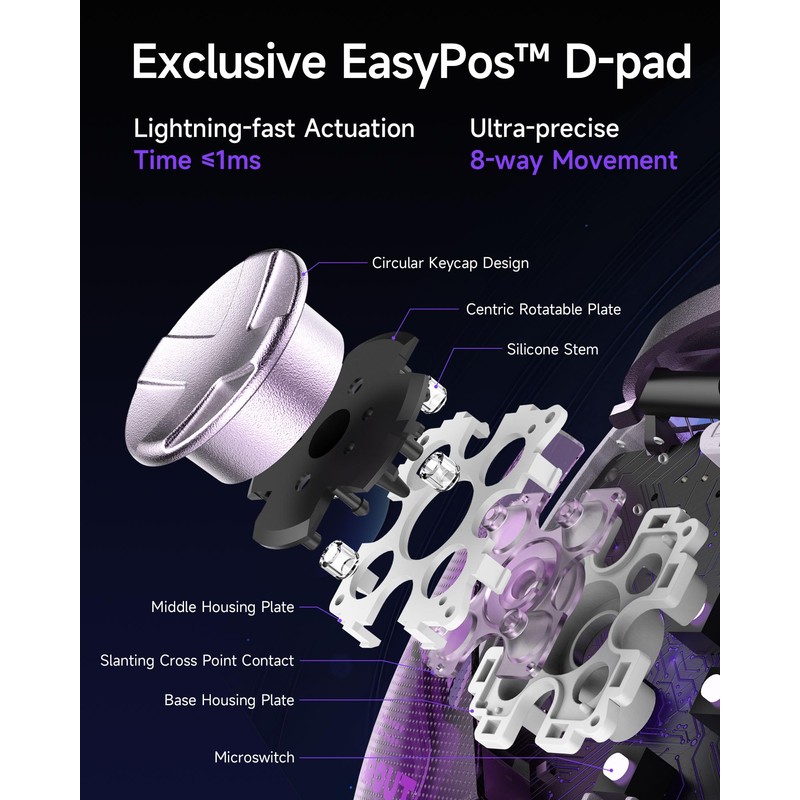 - 【 Exclusive EasyPos D-pad】Powered by EasySMX’s exclusive EasyPos technology, the D-pad ensures lightning-fast, millisecond-level response and ultra-precise 8-way movement control.
