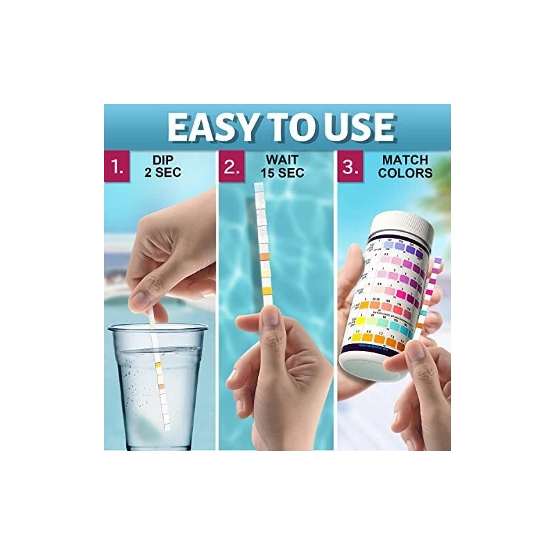 EASYTEST 7-Way Pool Test Strips 150 Strips Water Chemical Testing - White