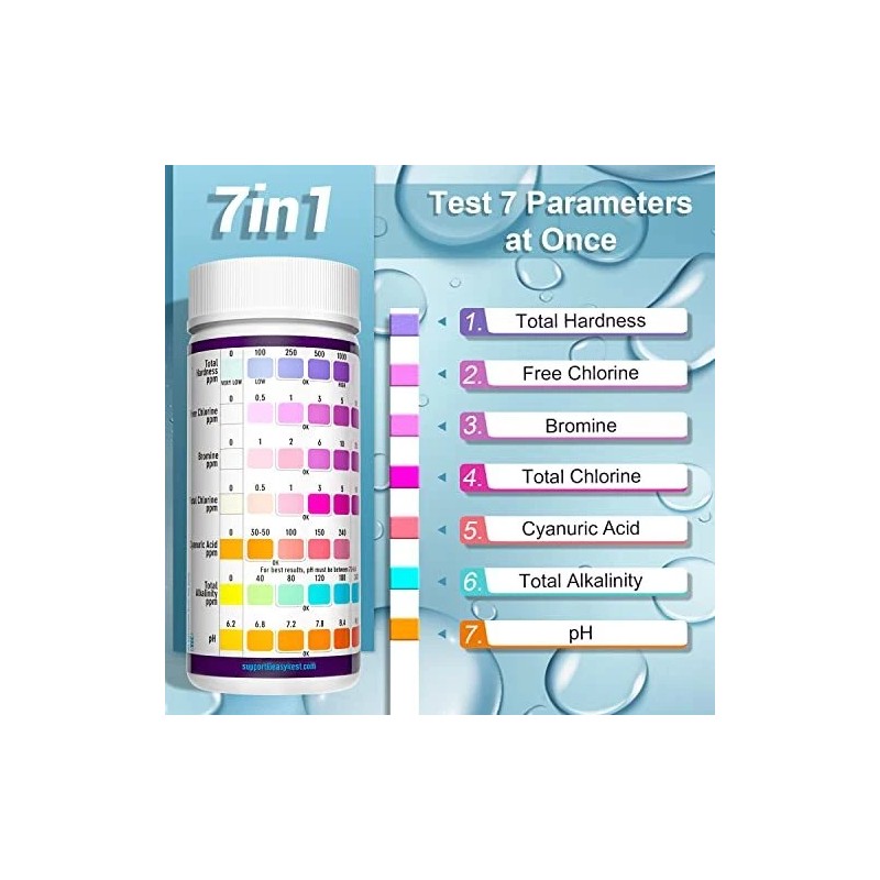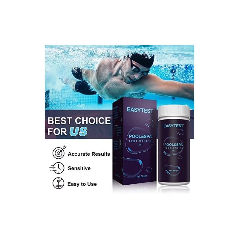 EASYTEST 7-Way Pool Test Strips 150 Strips Water Chemical Testing - White