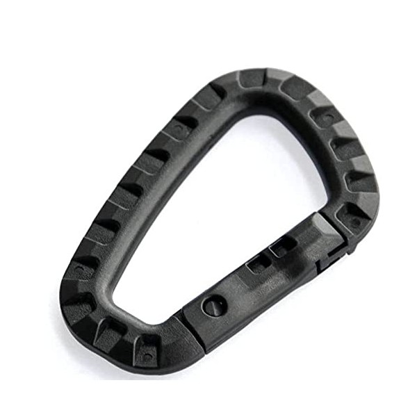 Easywisdom 10pcs Black 80mm D-ring Carabiners Hanging Hook Plastic Clip Snap for Backpack Hiking Camping Outdoors with Free Cable Organizer