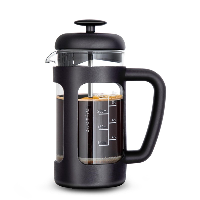 Easyworkz French Press Heat Resistant Glass for Coffee & Tea Soft Grip 350ml (3 Cups), Black
