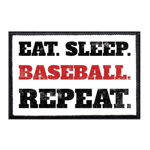 Eat. Sleep. Baseball. Repeat. Morale Patch | Hook and Loop Attach for Hats, Jeans, Vest, Coat | 2x3 in | by Pull Patch