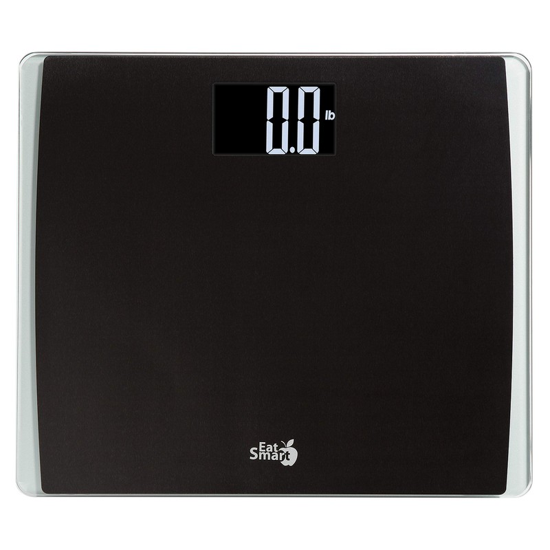 The Eat Smart Precision 550 tops the charts with its extra high 550 lb. capacity, the highest capacity in the market. The generous 15” x 13” platform is highlighted by black stainless steel placed on a silver glass base, easily accommodates all foot sizes, provides comfort and stability, and is sturdily constructed. Four precision sensors and proprietary step-on technology ensure instant and accurate measurements in 0.2 lb. or 0.1 kg increments, eliminating the need to tap on the scale and wait for it to calibrate before stepping on. Once your weight has been taken, the scale will beep three times and hold your reading on the 3" x 2.25" bold black with bright white digits display, allowing extra time for you to step off the scale and view your weight. After several seconds, the scale’s auto off feature will activate to power off the scale and conserve battery power. Backed by the EatSmart 100% guarantee. Please contact us for help or troubleshooting your scale.