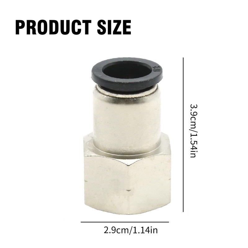 - Material: Crafted from sturdy materials, these push-to-connect fittings ensure prolonged performance in pneumatic systems. Their sturdy build enhances longevity, providing a trustworthy solution for air line connections