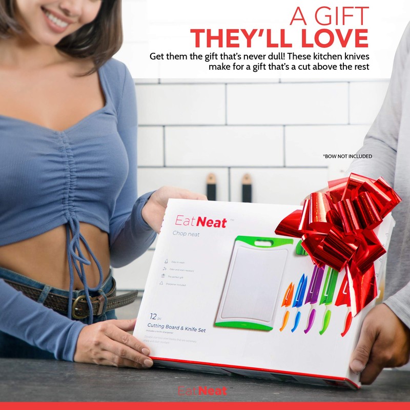 EatNeat 12-Piece Knife Set – Chef, Bread, Carving, Utility & Paring Knives with Sheaths, Sharpener & Cutting Board – Non-Stick Stainless Steel, Ergonomic, Dishwasher Safe – Ideal for Home, RV & Gift