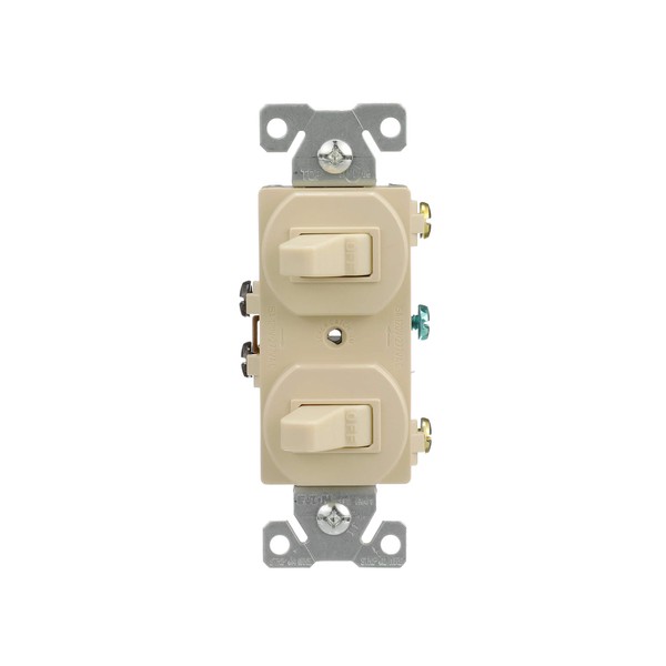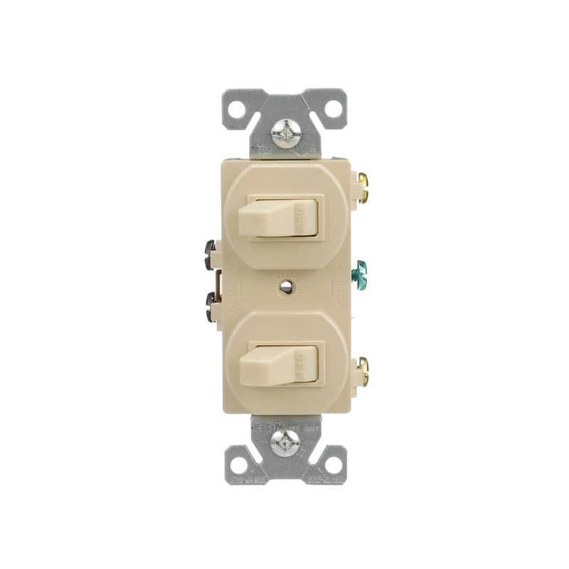EATON 271V-BOX Arrow Hart 271V Duplex Grounding Toggle Switch, 120/277 Vac, 15 A, 1 Pole, Ivory