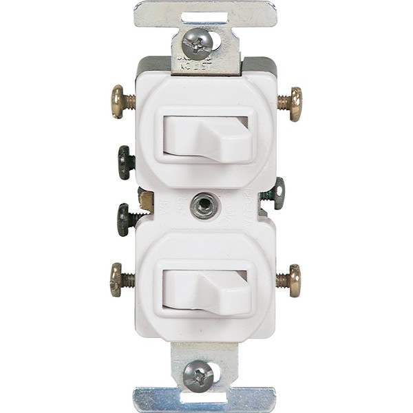 Cooper toggle switch, 3-way, Duplex, 120/277 V, 15 a, 1 poles, strap mounting, screw terminal, steel, White, zinc plated, UL listed. The Eaton 276W 15 amp commercial grade - toggle combination switches back & side wire. Grounding terminal screw standard. Receptacles have triple wipe line contacts and double wipe ground contacts to insure long-term plug retention. Thick steel mounting strap zinc-plated for corrosion resistance. Break-off provision for wiring both devices on same circuit or on separate circuits. Terminal screws backed out - ready for wiring. Side wire terminals accept up to no. 10 solid or stranded wire. Pilot light may be wired to indicate power "on" or power "off". combination slot/Phillips head mounting and terminal screws ease installation (slot/Robertson screws in Canada where available).