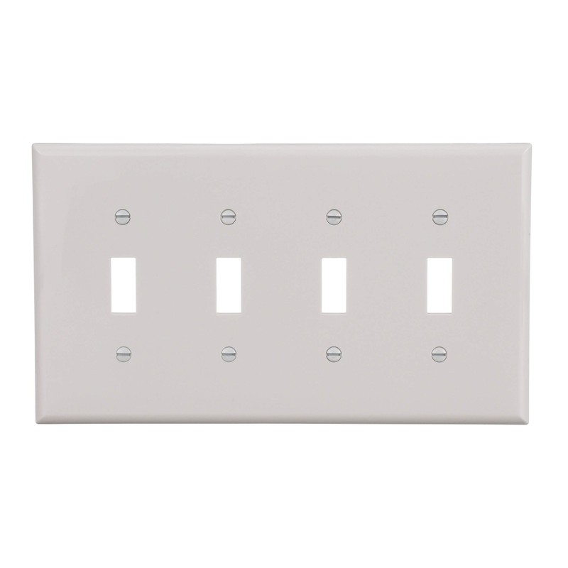 Eaton PJS4W Polycarbonate 4-Gang Screwless Toggle Switch Mid Size Wall Plate, White