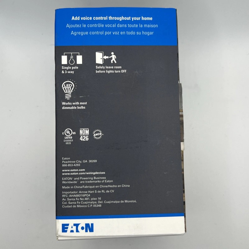 Eaton WFAVD30‑W Wi‑Fi Smart Voice Dimmer with Built‑In Alexa – New