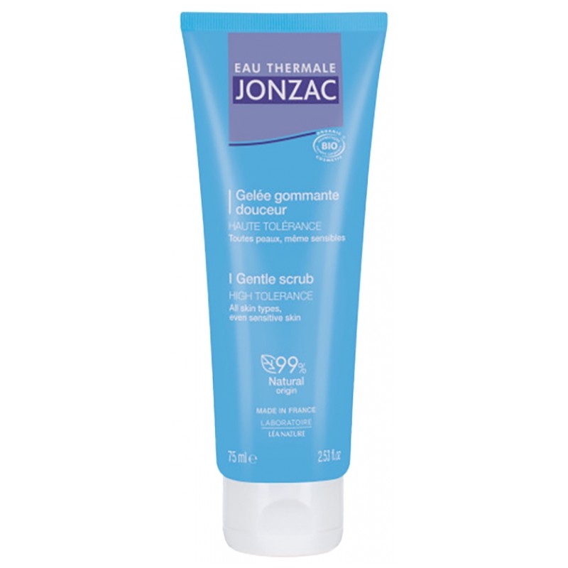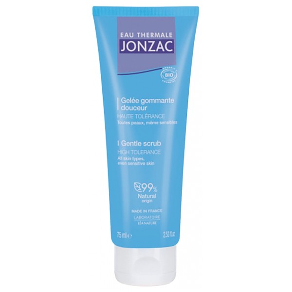 Eau Thermale Jonzac Gelé Gommante Douceur Bio 75 ml is a delicate pearly blue jelly with a fresh, delicate texture, designed to gently exfoliate the skin. Suitable for all skin types, even the most sensitive, this gel offers high tolerance.