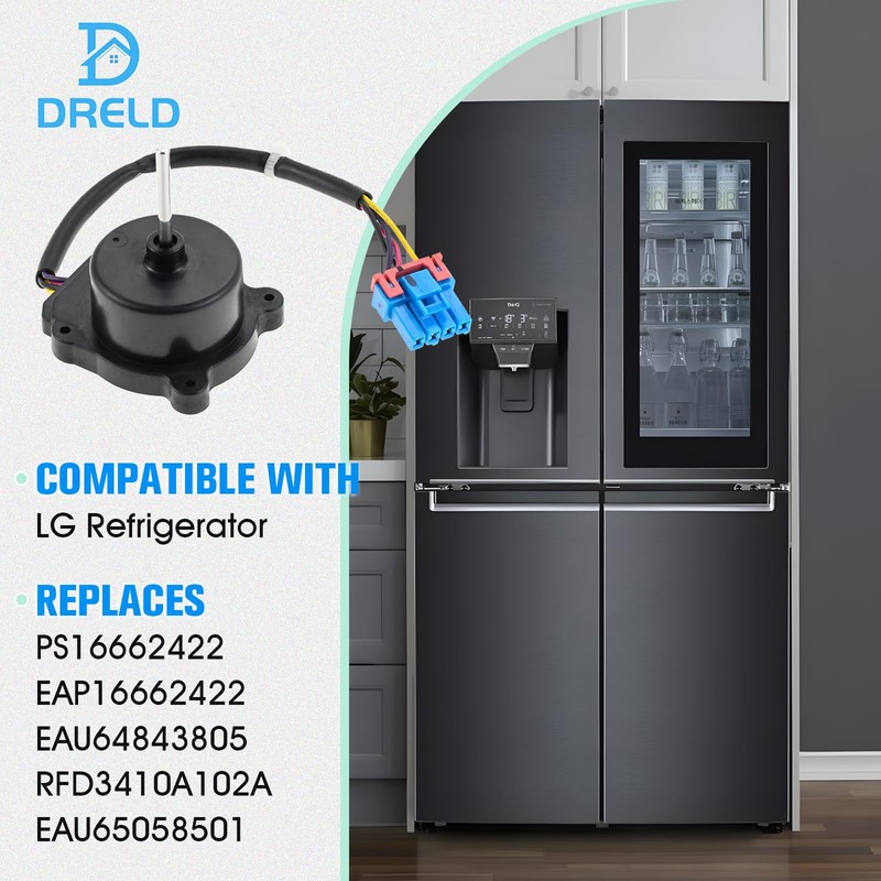 • 【Replace Part Number】EAU65058502 EAU64843805 RFD3410A102A EAU65058501 Refrigerator Condenser Fan Motor replace AP7178309 PS16662422 EAP16662422