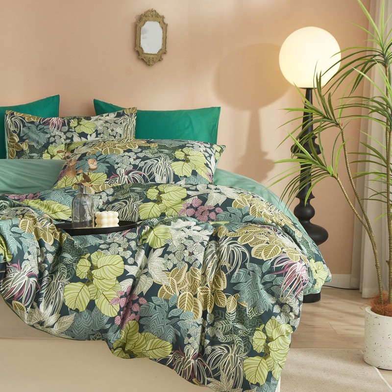 - Washing and Care: The tropical green leaf pattern duvet cover set is easy care. Recommend washing before first use. Machine wash in cold water, gentle cycle, tumble dry at low heat, do not bleach.