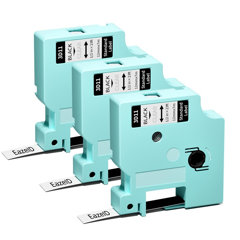 EazeID LM1600 Label Maker Tapes Compatible with Dymo 45010 S0720500 D1 Label Tape DYMO Label Maker Refil, Black on Clear 3-Pack 3D11 1/2 Inch x 23 Ft