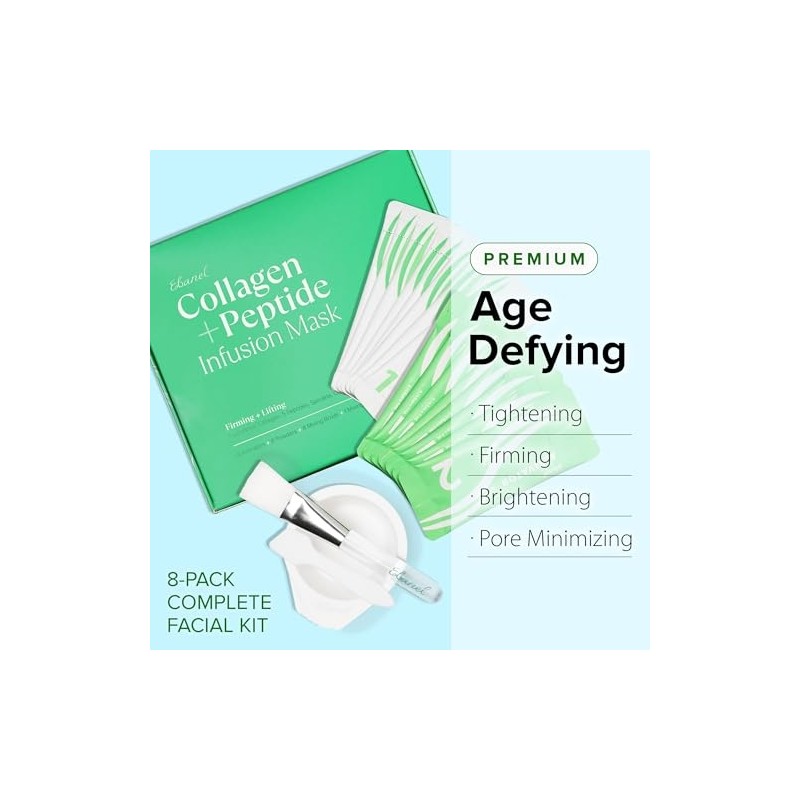 - Collagen Peptide Infusion Mask – Innovative Fresh-Mix, Wash-Off kit combines Collagen, Peptides, and Albumen for a potent treatment that creates an instant lifting effect while revitalizing dull, tired skin