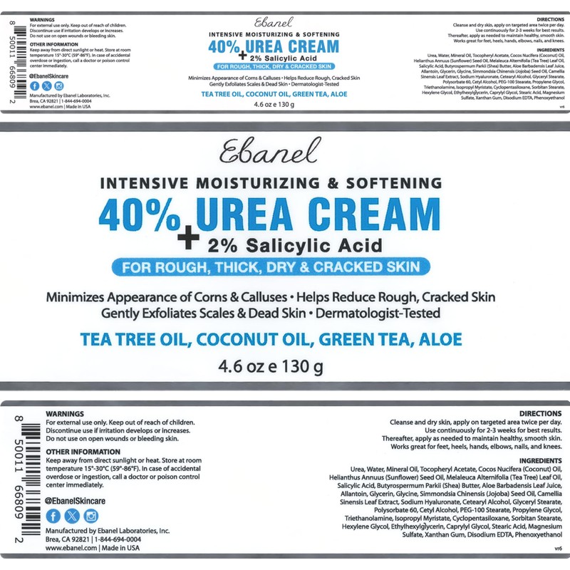 Ebanel Urea Cream 40% plus Salicylic Acid 2%, Foot Cream for Dry Cracked Heels Feet Knees Elbows Hands, Foot Dead Skin Cuticle Callus Remover Toenail Softener, Keratolytic Skin Barrier Repair