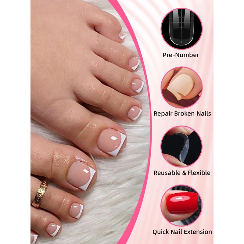 2. Easy to Use The long square toenail shapes made of polygel make it easy to apply the nail extension seamlessly, providing a natural and well-groomed look.