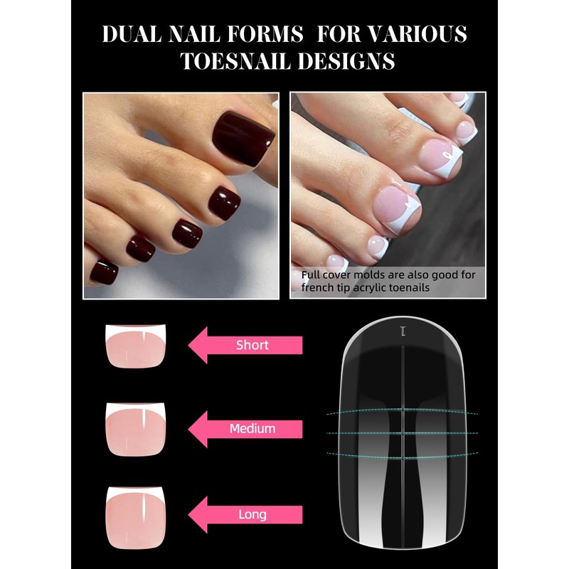 - 【MULTI-PURPOSE】The dual shapes for toenails are ideal for professional nail technicians or nail beginners as well as nail salons and DIY nail art enthusiasts, which can be used to build acrylic nails/structure poly gel nails, perfect for painting clear nails and artificial nail tips. Wonderful gifts for girlfriends, mothers and daughters, such as Christmas gifts, birthday gifts and New Year gifts.
