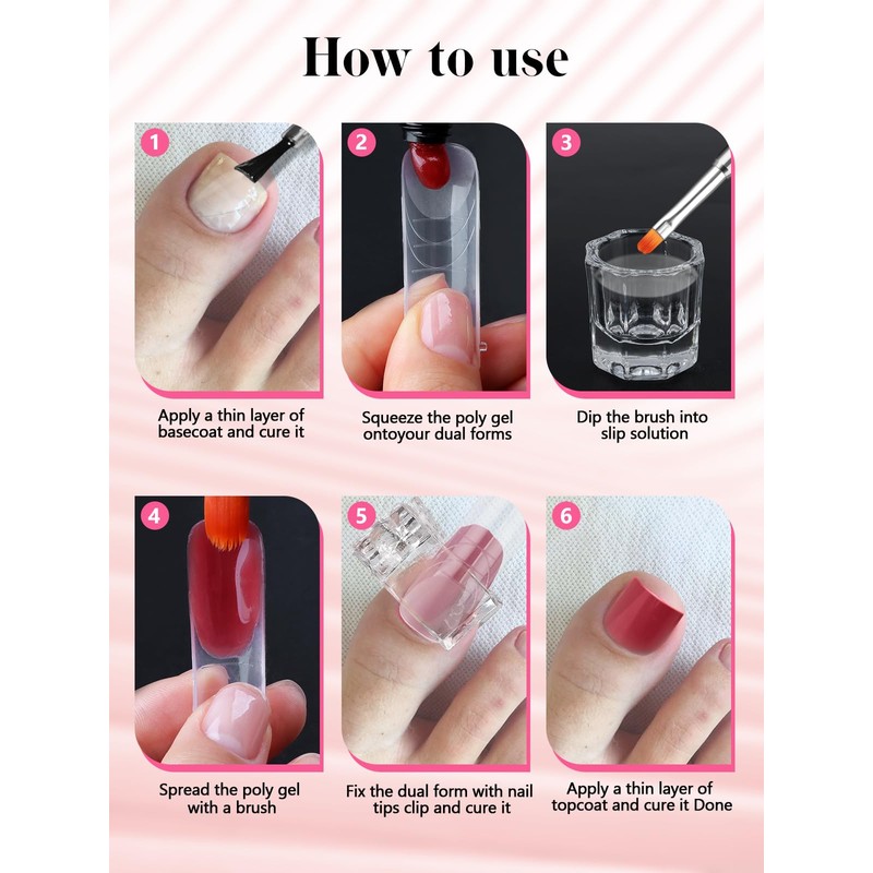 - Clearly marked: Each polygel toenail shape has curved scales for your different nail extension needs, so you can easily design and control the desired length or shape. Dual nail shapes can be well adapted to your nail shape, perfect for painted clear nails and French tips.
