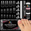 EBANKU 300 Pieces Polygel Tips Nail Shapes for Toes with Slip Solution, Long Square Dual Tips Nails for Pedicure Nail Extension, Poly Gel Toenails Set, 15 Sizes