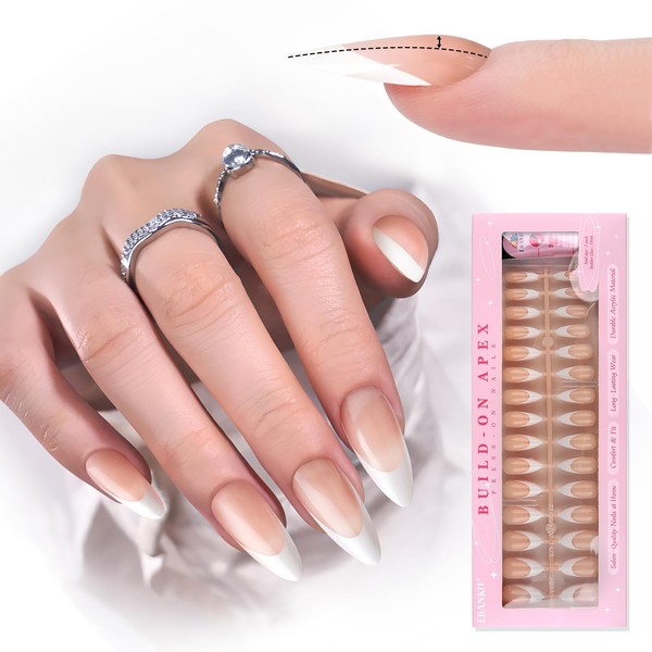 EBANKU French Tip Press on Nails, 150 Pieces Preformed Glue-On Nails, White Medium Almond Shaped False Nails, Gel Nail Tips, Thick Acrylic Nails for Flat Nails with Nail Glue