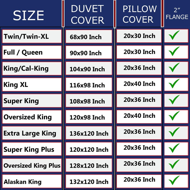 - ✔ RIGHT FIT – The package includes a cozy and comfortable Duvet Cover & 2 Pillow Cover Sham. Size of the Super King Plus Duvet Cover is 120x120 Inch & Pillowcase Size is 20x36 Inch. The duvet cover can be used with duvet insert, down / alternative comforters, weighted blankets or as blankets itself without any inserts.