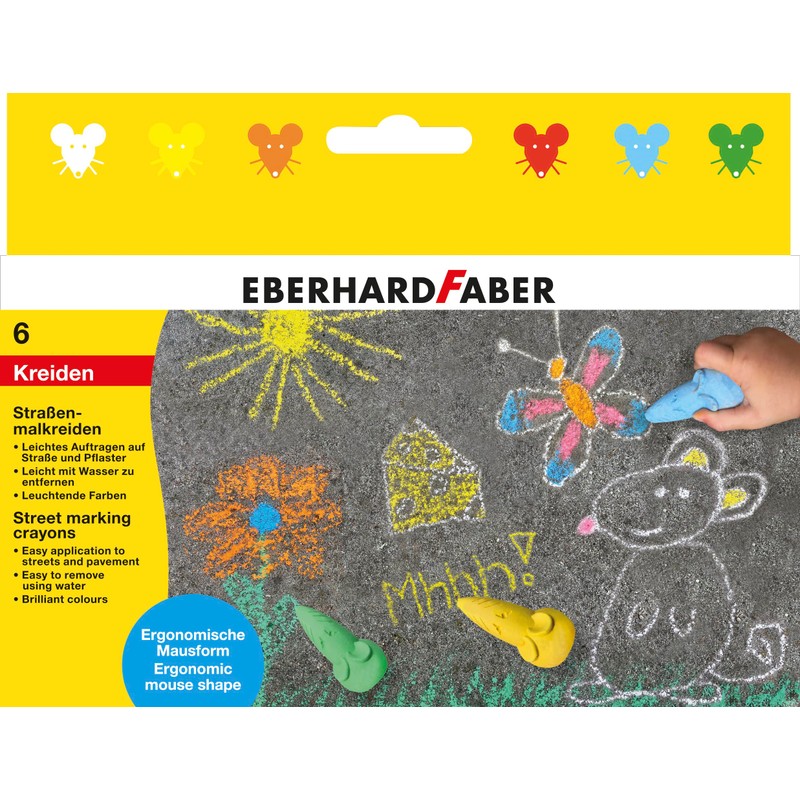 EBERHARD FABER 526561 - Straßenmalkreide Maus, 6 Straßenkreiden für Kinder ab 3 Jahren, Malkreide für draußen