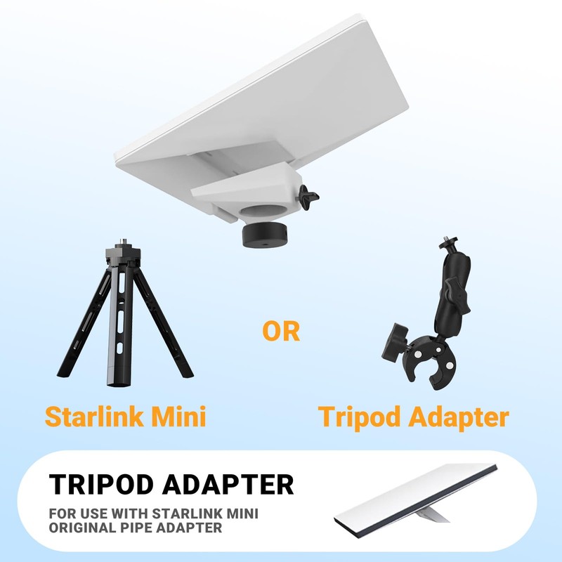 - Wide Compatibility: Equipped with a 1/4-20 threaded hole + 3/8-16 conversion screw (included), this adapter seamlessly connects to tripods, clamps, or RV rail mounts for Starlink Mini, transforming it into a versatile solution for rooftops, vehicles, tents, and more.
