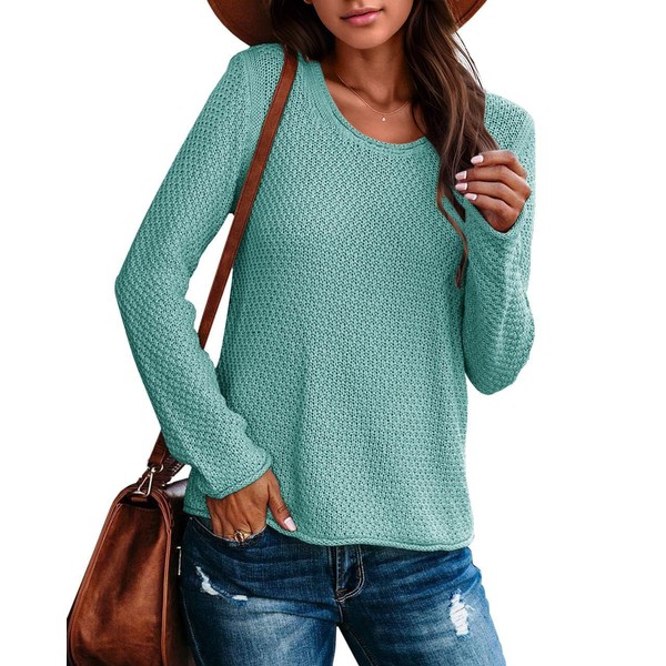 Ebifin Women's Crew Neck Pullover Sweater Solid Color Casual Warm Lightweight Knit Sweaters