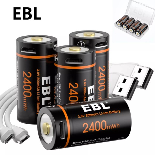 EBL 4x EBL RCR123 CR123A CR123 Batteries 3V Lithium Li-ion USB Rechargeable w/Cable