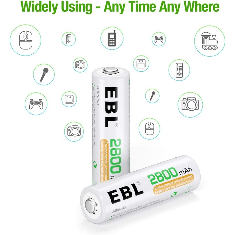 EBL AA 2800mAh High Performance Ni-MH Rechargeable Batteries, 4 Pack by EBL Store