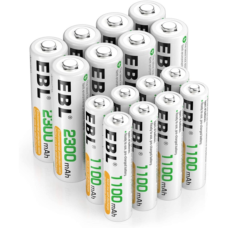 EBL AA AAA Batteries Combo 16 Sets with 8PCS AA 2300mAh and 8-Count AAA 1100mAh Rechargeable Batteries