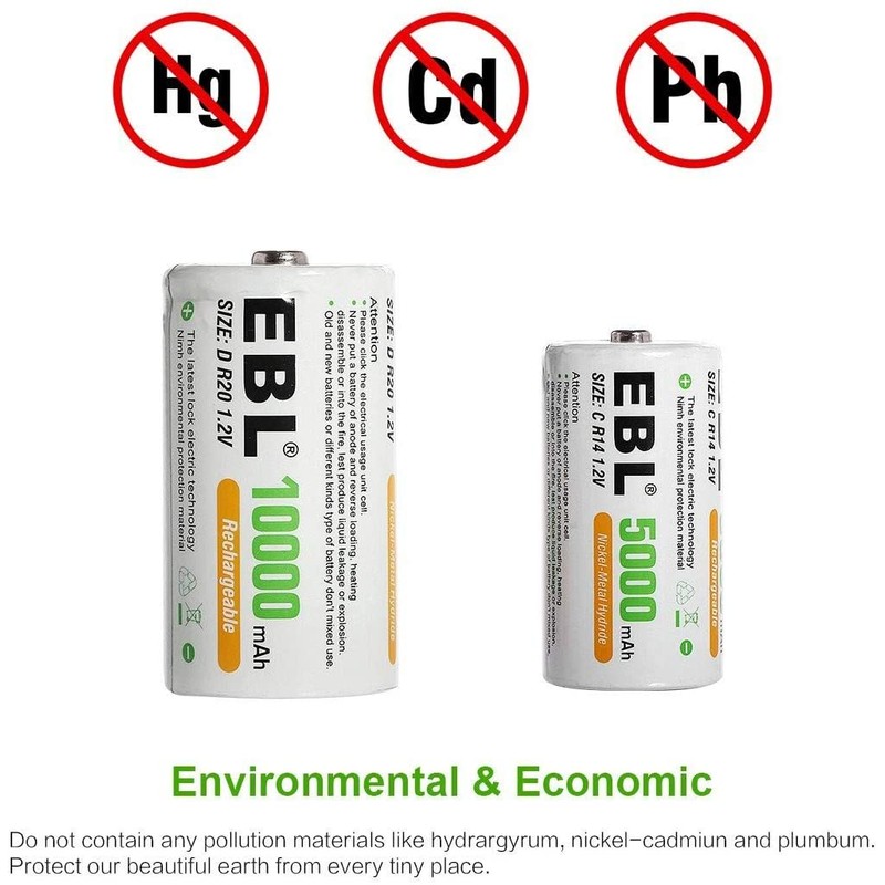 EBL Rechargeable C Batteries 5000mAh Ready2Charge C Size Battery with Storage Box, Pack of 6