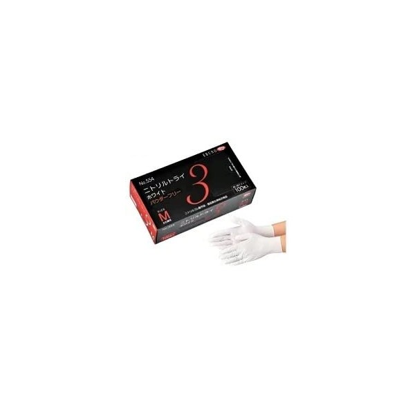 Ebno Nitrile Tri3 White Powder Free No.554 M 100 Sheets 554M100 《Nitrile Gloves》