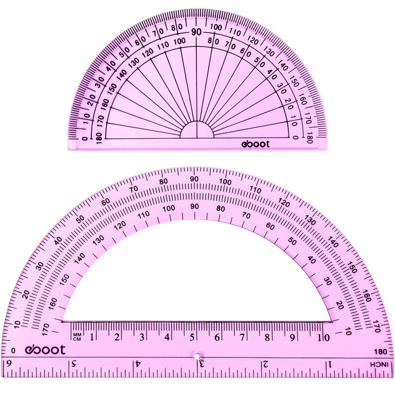 EBOOT 2 Pcs Plastic Protractor Clear 180 Degrees Transparent Protractor for Geometry, 4 Inch and 6 Inch(Pink)