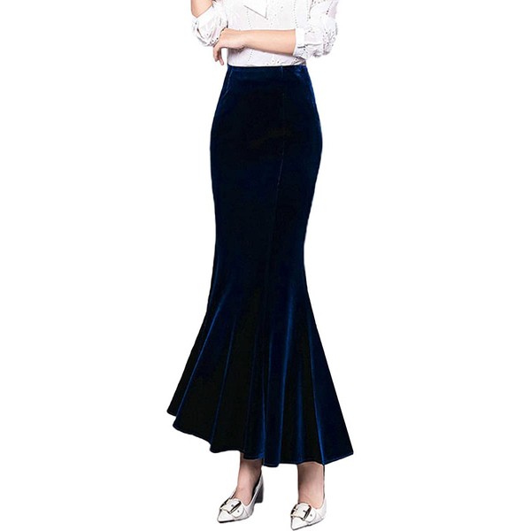 ebossy Falda larga de sirena de terciopelo de cintura alta para mujer, para fiesta de noche, Azul, XXL
