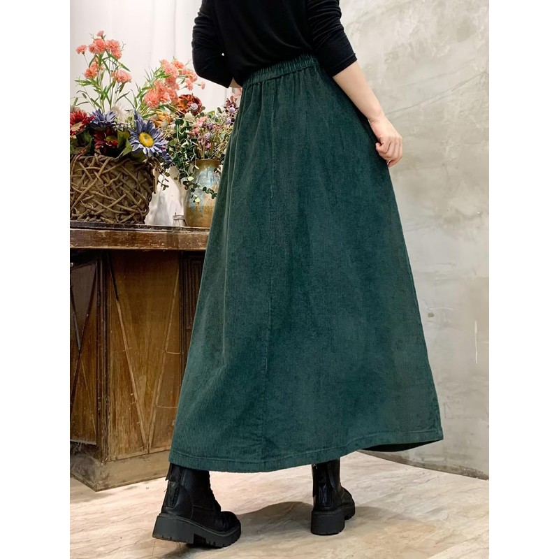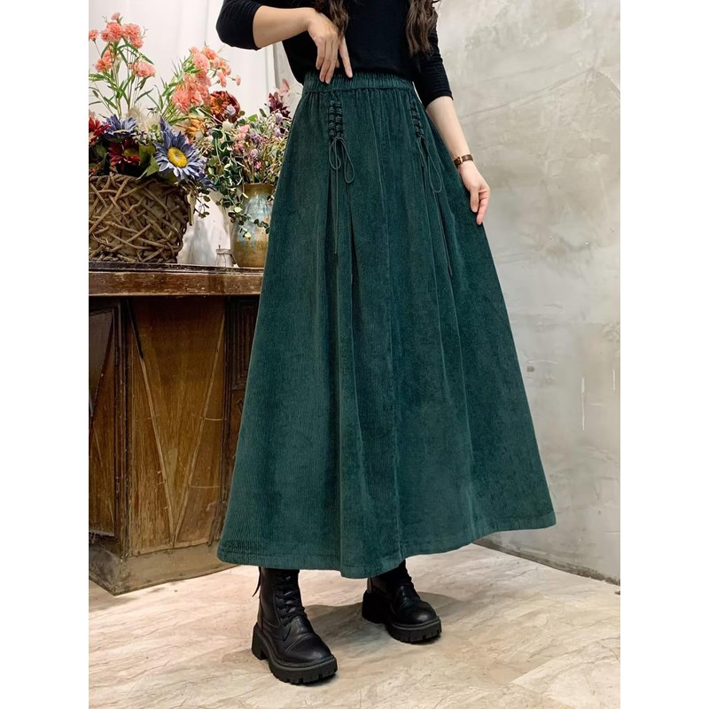 - Material: Premium corduroy fabric, boasts a textured surface for a chic, cozy look. Durable yet soft, this corduroy a-line ruffle maxi skirt is a ideal choice for fall and winter' s stylish vintage look