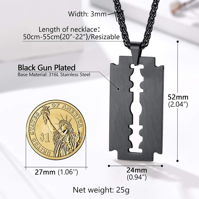 Eboy Chains Pendant Mens Jewelry Punk Black Razor Blade Necklace for Men Cool Chain