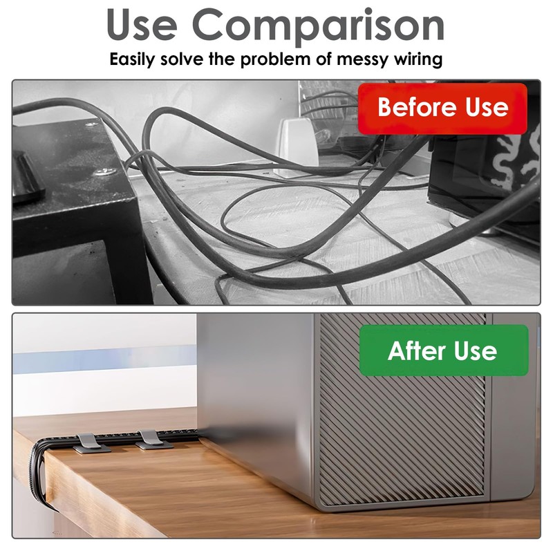 - Velcro Cable Ties: The segmented adjustable design lets you customize cable placement without removing the entire organizer—ideal for tight corners and hard-to-reach areas. No tools or technical skills needed! Its low-profile build fits seamlessly into narrow gaps, while the hassle-free installation gets your space organized in minutes